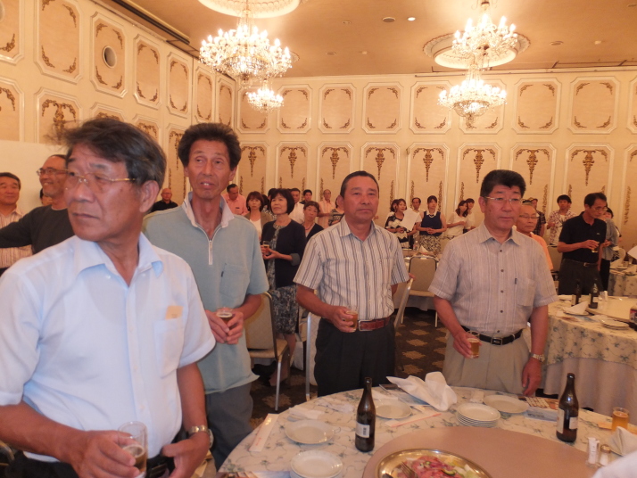 | 毎年恒例となっている宇部商全校同窓会。 今年は8/22(土)国際ホテル宇部で盛大に開催された。42年卒理事の前田輝一君の呼びかけで、14人の同級生が集まり賑やかに一夜を過ごした。 昨年は出席者が5名と寂しかったが、今年は14名ということで、10人がけテーブルが堂々2台確保されている。(笑) 乾杯が始まる前の総会でちょっと間延びした感じがあったが、ひとたびビールが注がれると、それからはエンジン全開。(笑) お決まりのビンゴゲームの景品がなくなったところで、予定通りの2次会へ移行した。 今度は針間君の息子さんが経営するスナックだ。そこでもやはり、声が枯れるほど喋りまくり楽しいひと時を過ごした。 |