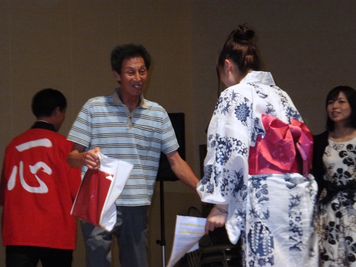 | 毎年夏に開催される宇部商の全校同窓会、今年も8月27日(土)に ANAクラウンプラザホテル宇部で開催された。会場には約400名の参加者で賑わう中、我々42年卒は12人が出席し、一つのテーブルを囲んだ。 会の最後に行われるのがビンゴゲーム。32型テレビ・杉乃井ホテル宿泊券・松阪牛セット などなど狙い目の景品もあったが、ビンゴにはなかなか届かない。 それでも我々のテーブルから、藤川・大田の両氏がビンゴを決めた。しかし時遅く、上位景品はもう無くなった後で藤川君が缶ビール、大田君がケーキを引き当てたのがせいぜいだった。(笑) 全部の景品がなくなったのを見届け、最後の万歳三唱をしてから会場をあとにした。 我々が最後までいたのは初めてじゃない?(笑) 楽しい1日が過ごせました。 |